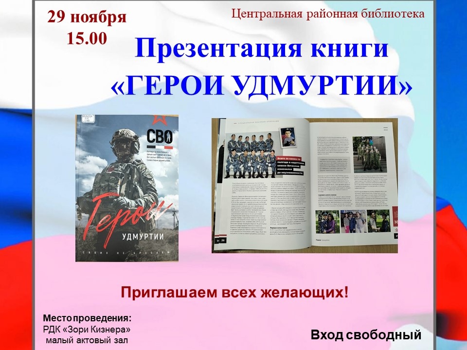 В Кизнерскую районную библиотеку поступил первый том книги памяти «Герои Удмуртии» о героях республики, погибших в ходе специальной военной операции.