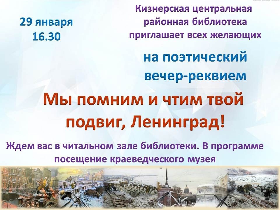 Приглашаем всех желающих на поэтический вечер, посвященный творчеству поэтов блокадного Ленинграда. Приглашаем всех желающих на поэтический вечер, посвященный творчеству поэтов блокадного Ленинграда.