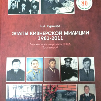 Как приятно получать подарки, а если это книги, да ещё и о районе — это особенный подарок для библиотеки! Николай Леонидович Куренков, председатель ветеранской организации ОВД Кизнерского района, подполковник в отставке подарил две книги в Центральную районную библиотеку об истории становления Кизнерского уголовного розыска: «Уголовный розыск. 100 лет. 1918-2018» и «Этапы Кизнерской милиции 1981-2011».